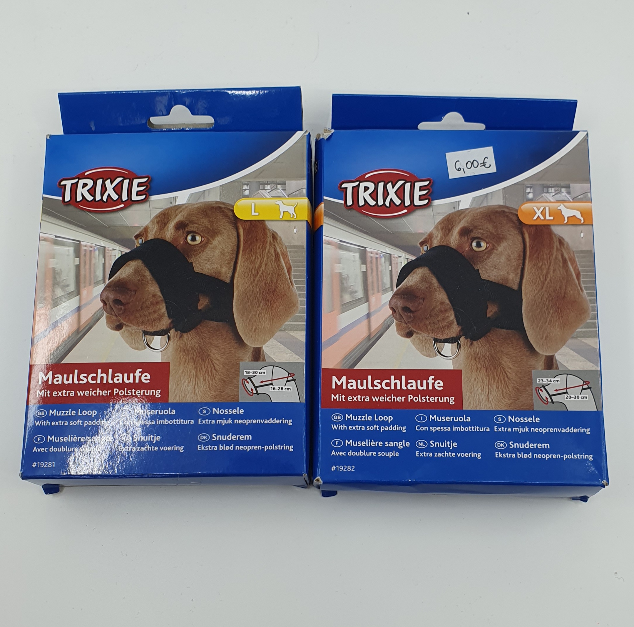 Poddajný vďaka mäkkej výplni, nastaviteľné remienky. Zapínanie z umelej hmoty umožňuje rýchle nasadenie náhubku.