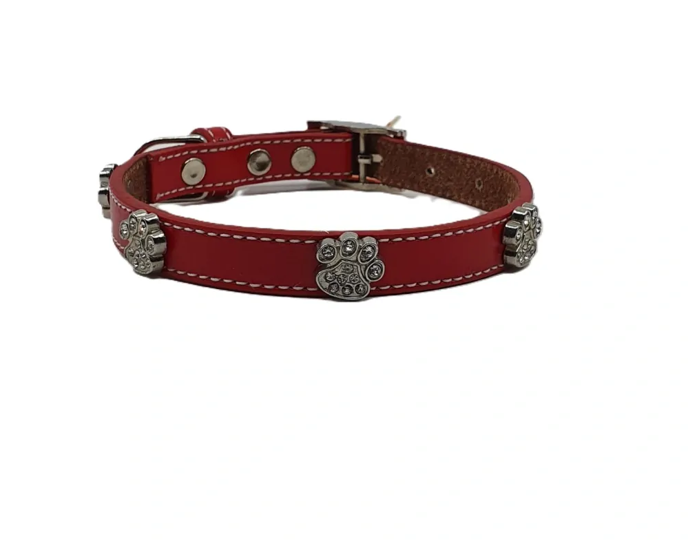 Koženný obojok zdobený labkami ,SKLADOM dostupný vo veľkosti S: rozmery: 29 - 37cm/13mm