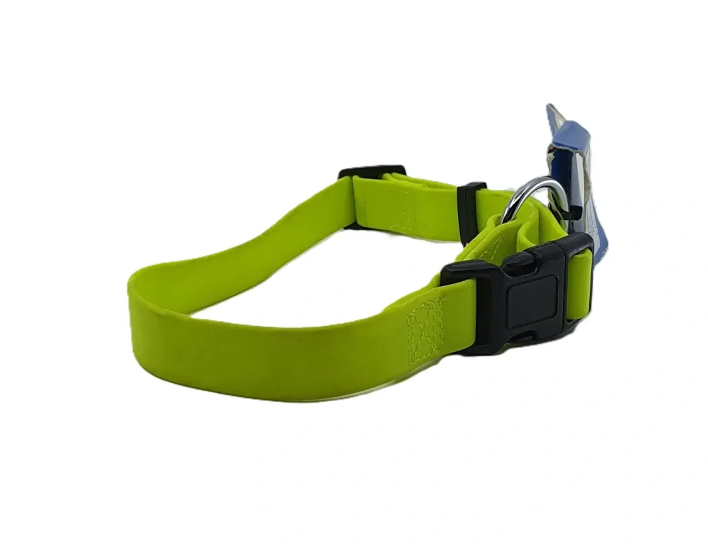 Neonovo žltý gumenný obojok vhodný pre psíky, ktoré radi plávajú.